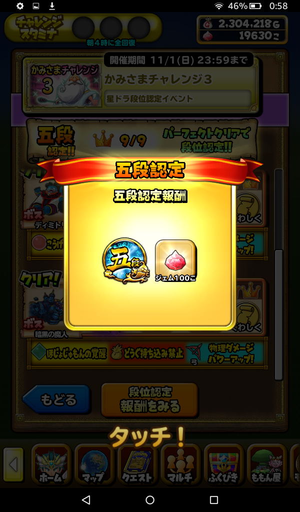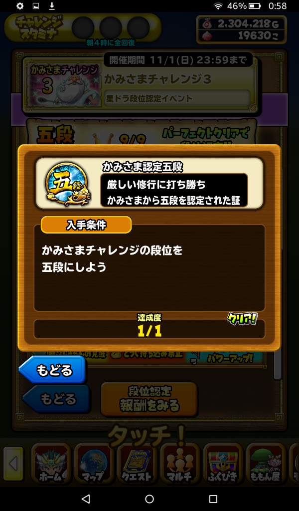 かみさまチャレンジ五段の冒険バッジをゲットした。