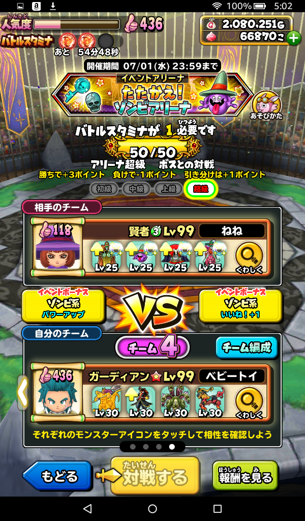 星ドラのモンスター闘技場イベント「たたかえ!ゾンビアリーナ」を全クリしました。