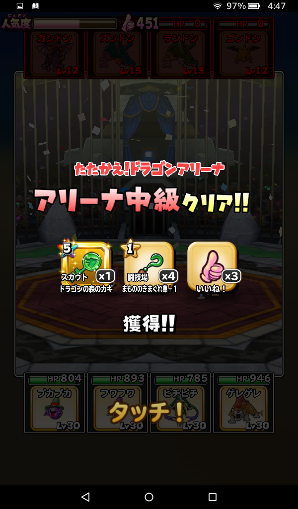 たたかえ!ドラゴンアリーナ超級をクリア!