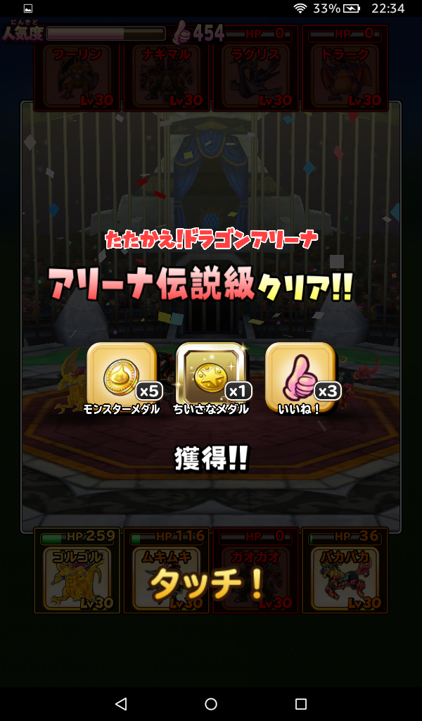 たたかえ!ドラゴンアリーナ伝説級をクリアしました!
