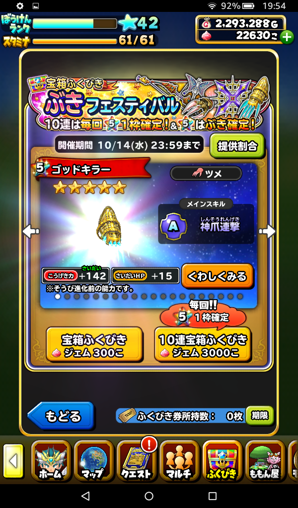 ぶきフェスティバルふくびき10連に挑戦しました。