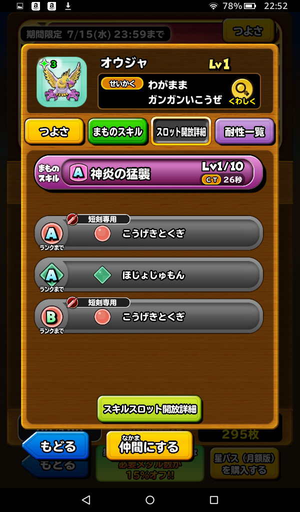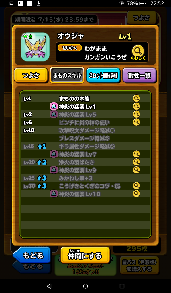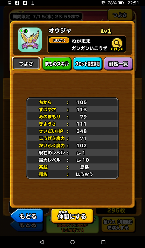 星ドラのモンスター闘技場7月のスペシャルスカウトのほうおうは取らないことにしました。