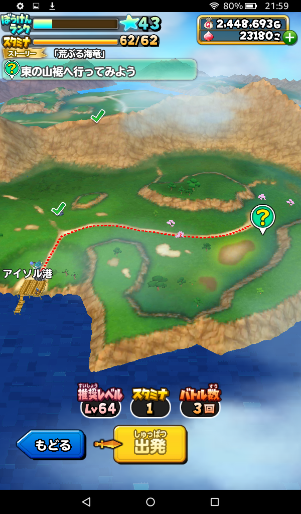 メインストーリー第17話「荒ぶる海竜」東の山裾へ行ってみように挑戦しました。