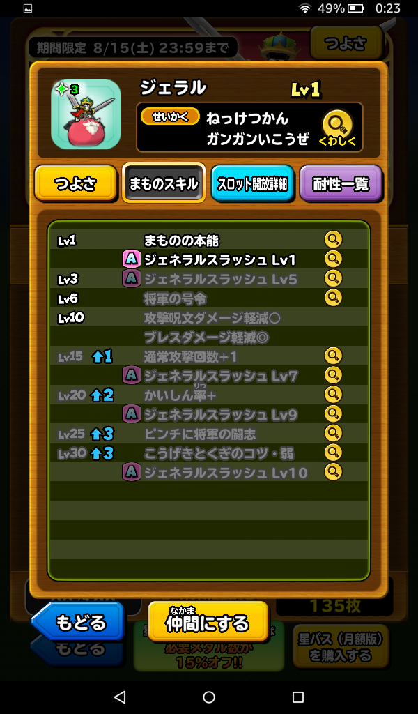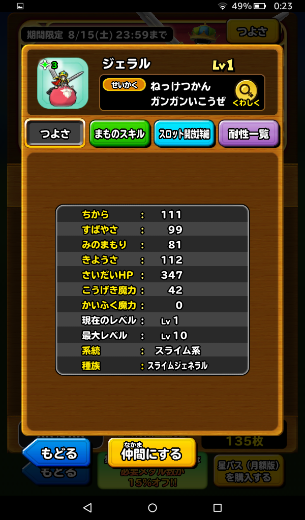 星ドラのモンスター闘技場8月のスペシャルスカウトでスライムジェネラルは取らないよ。