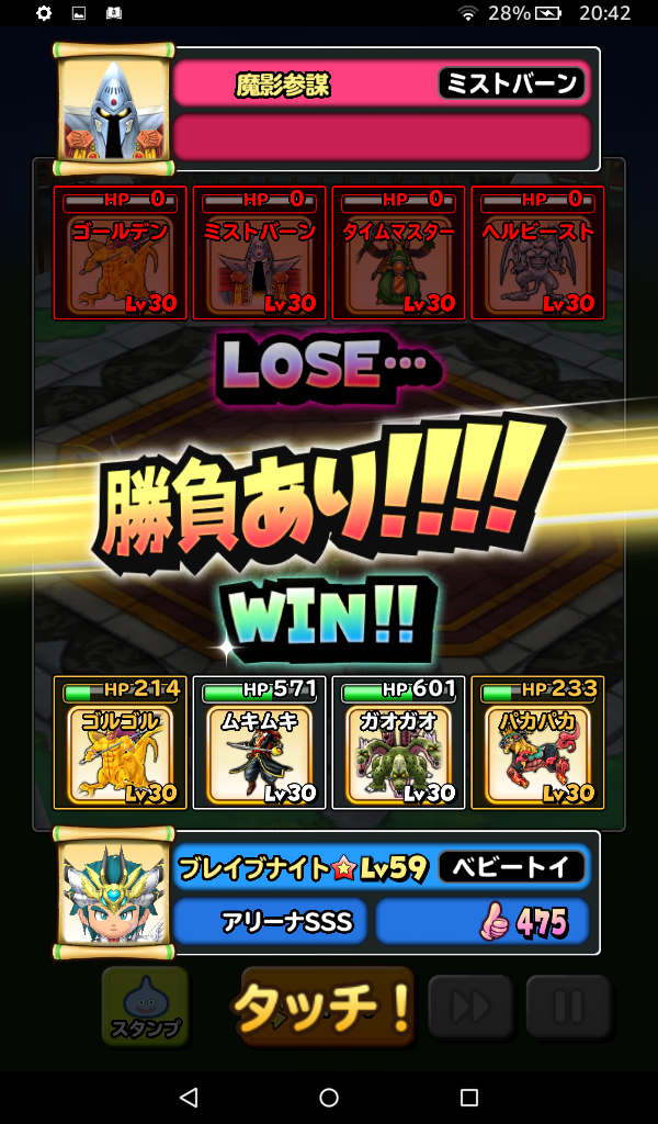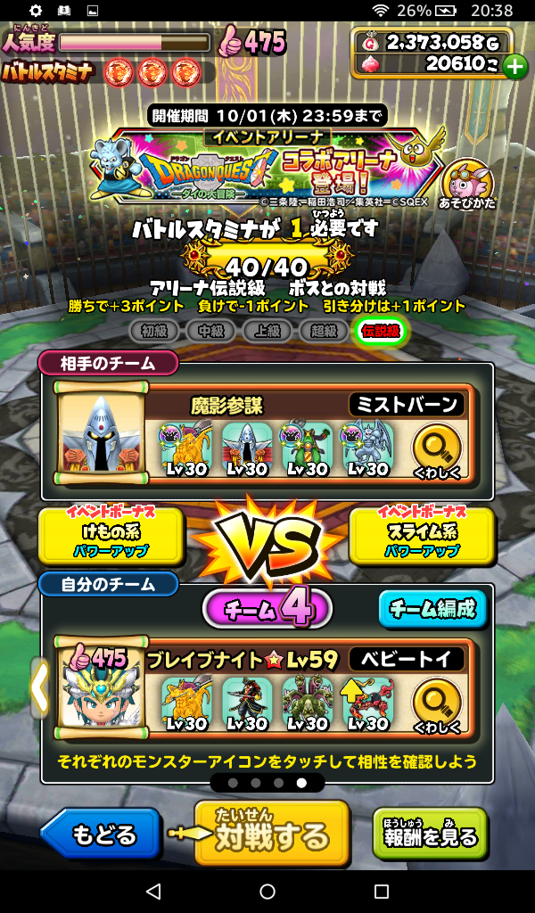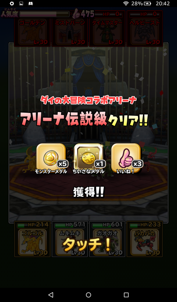 星のドラゴンクエストのモンスター闘技場ダイの大冒険コラボアリーナ伝説級をクリアした!