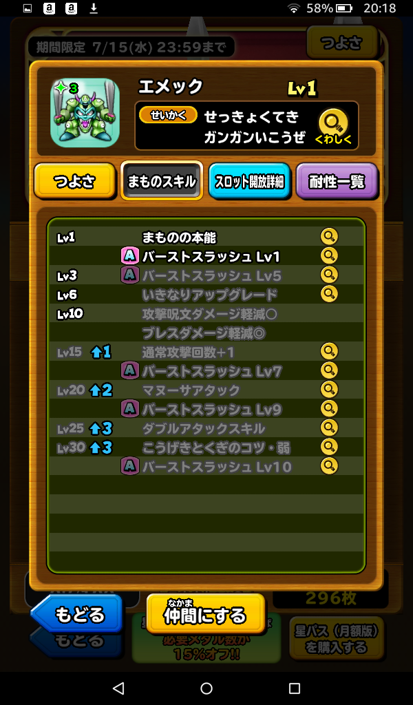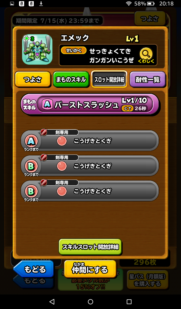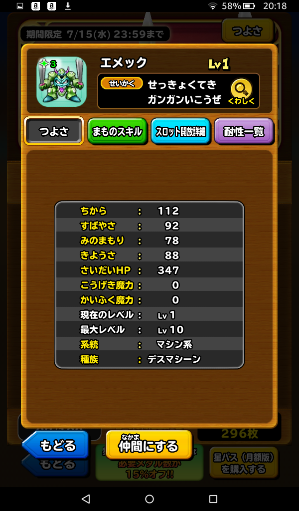 星ドラのモンスター闘技場7月のスペシャルスカウトのデスマシーンは取らないことにしました。