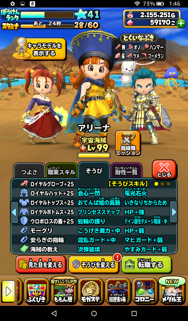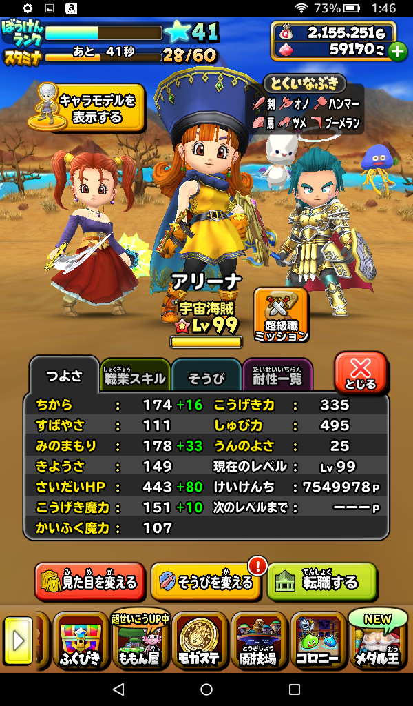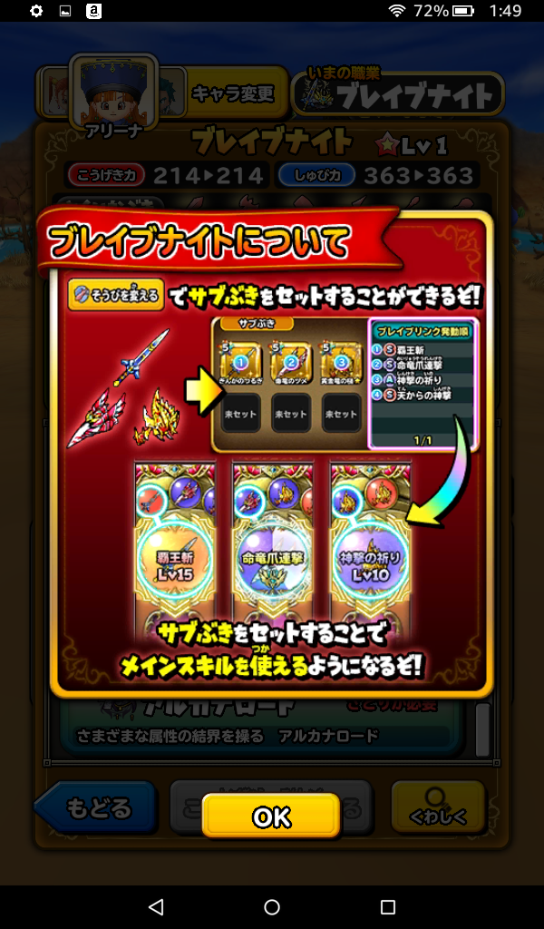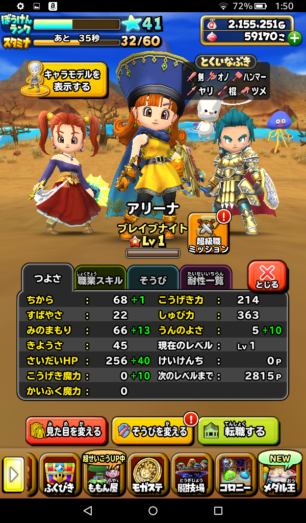 アリーナちゃんをブレイブナイトにするよ。ステータスはこんな感じ。