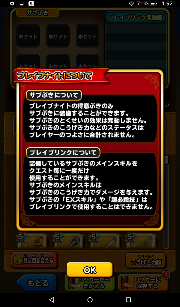 ブレイブナイトレベル1のステータスはこんな感じ。