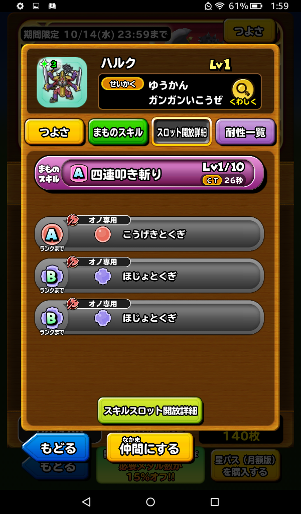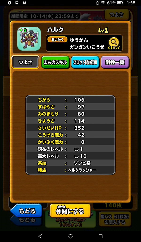 星ドラのモンスター闘技場10月のスペシャルスカウトのヘルクラッシャーをゲットしました。
