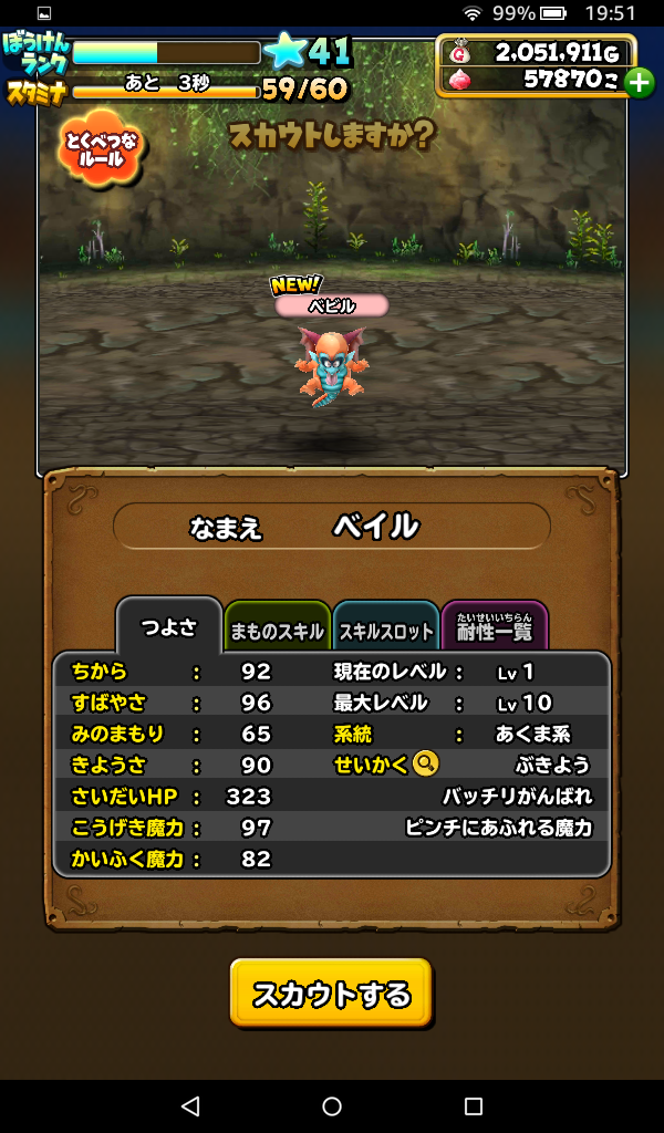星ドラのモンスター闘技場たたかえ!ハーゴンアリーナでもらえるベビルのカギを使いました。
