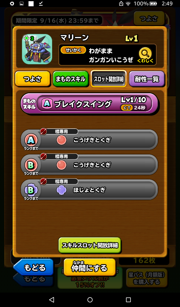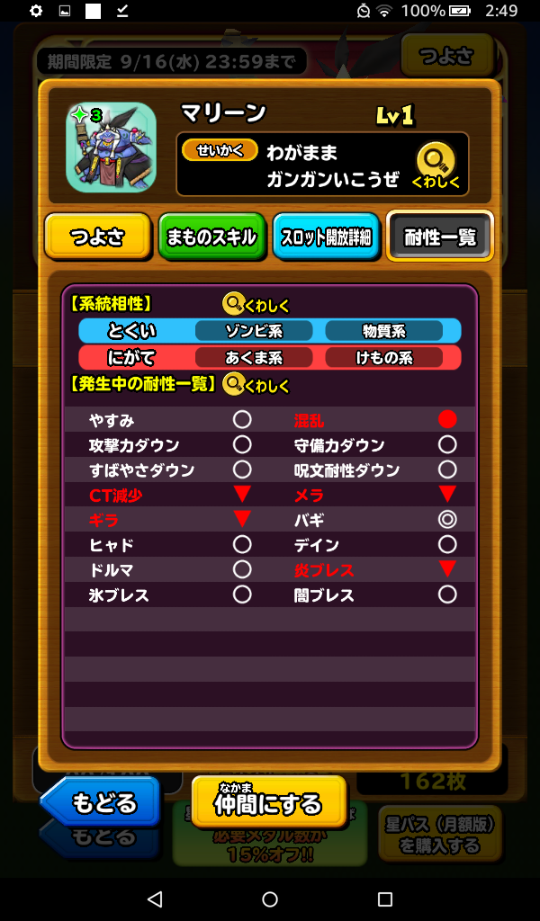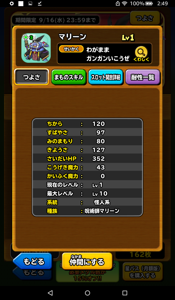 星ドラのモンスター闘技場9月のスペシャルスカウトの呪術師マリーンは見送ることにしました。