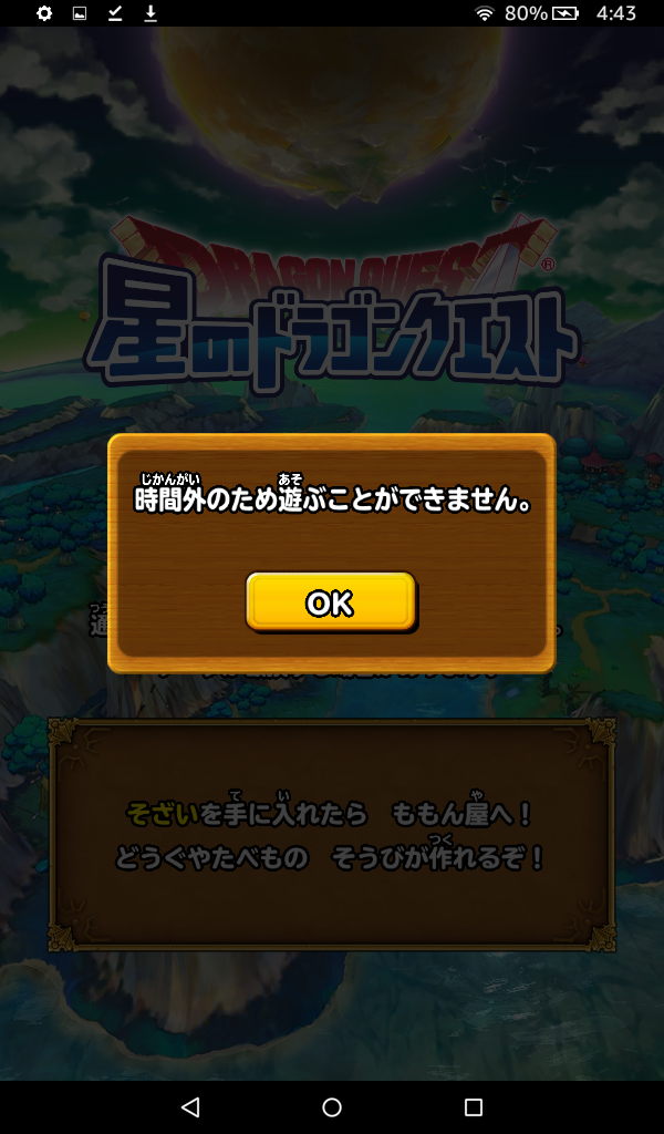 星ドラを起動すると「時間外のため遊ぶことができません。」と表示されます。