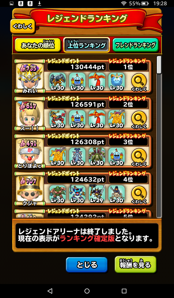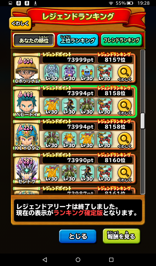 星ドラのモンスター闘技場における第9回レジェンドアリーナのランキングが確定しました。