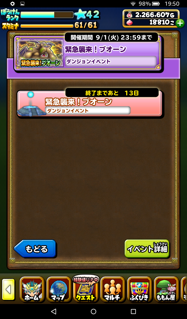 ダンジョンイベント緊急襲来!ブオーンに挑戦しました。