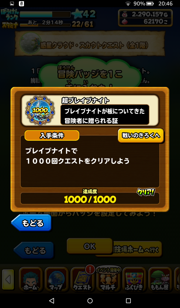 入手条件はブレイブナイトで1000回クエストをクリアすること。